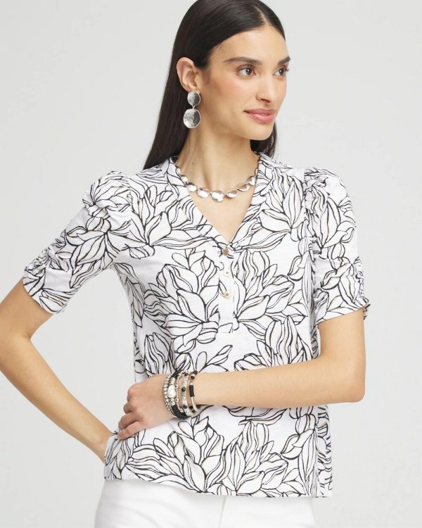 One of your favorites is here with a new iteration for 2025, now with new flattering details — introducing the Floral Slub Split Neck Henley Tee. Featuring elbow sleeves with stylish shirring and a split neckline, perfect for when wearing a beautiful necklace. Cut from our coveted slub fabric for a soft feel and luxurious look.