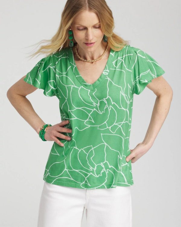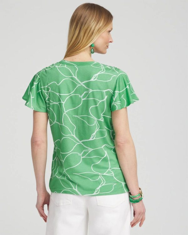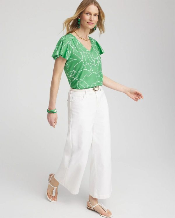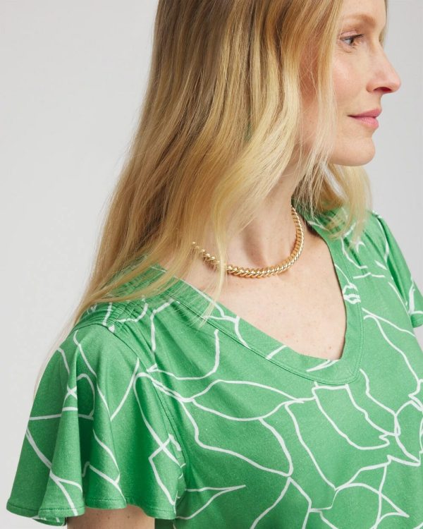 The Green Lines Flutter Sleeve Tee is not your basic fashion basic. This design features ruffle sleeves, plus a modesty gusset under the arms to boost your confidence. Wear it with crops, ankle jeans, or shorts for a simple way to dress up your casual looks.