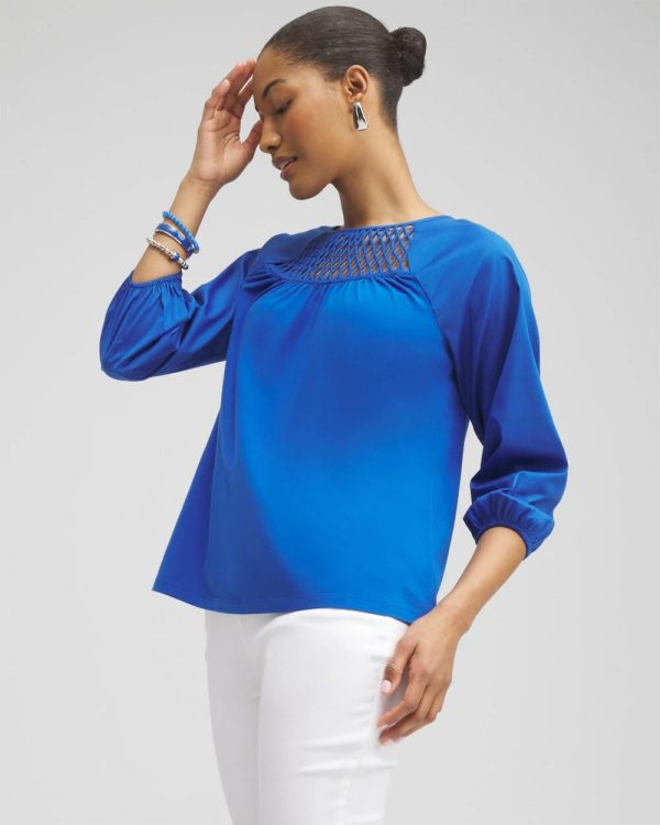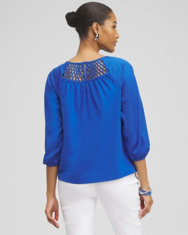 Chico’s Tees | Lattice Detail Top Intense Azure Women