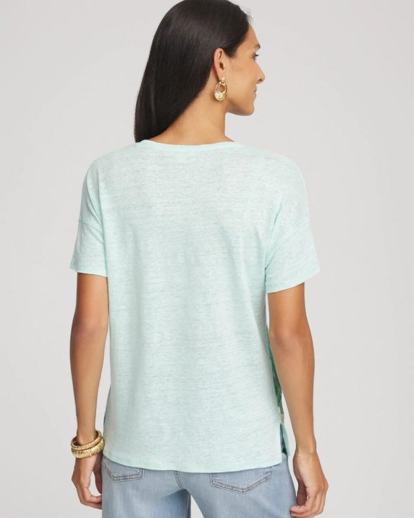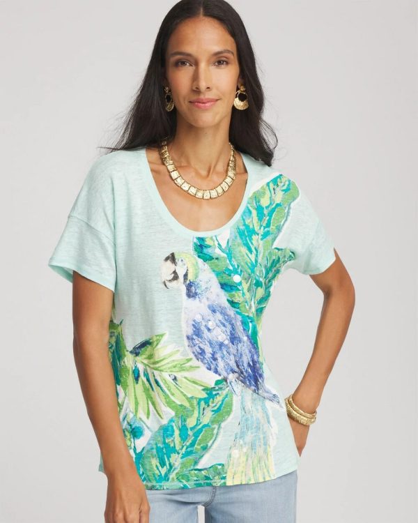 The Linen Embellished Parrot Easy Tee makes your favorite fabric even more effortlessly stylish. This all-linen design features the ease of a linen body, plus sequins and clear payette design detailing, accenting an island motif, capturing Chico’s origins. A flawless fit that flatters every figure. Wear it with crops or shorts for a simple and light-catching way to dress for the day.