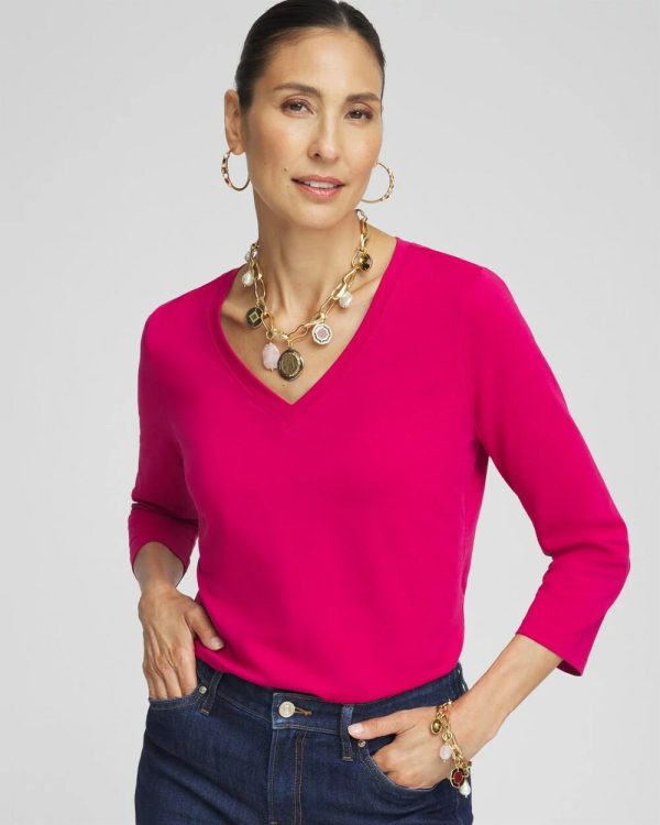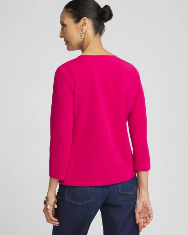 Soft and stretchy, our 3/4 Sleeve Perfect Tee is the an essential for everyday comfort and style. Made from lightweight cotton-stretch material, this tee features a modern fit that smooths your shape, plus a flattering V-neck. Wear to everywhere, from work to special occasions, paired with our Brigitte pants.