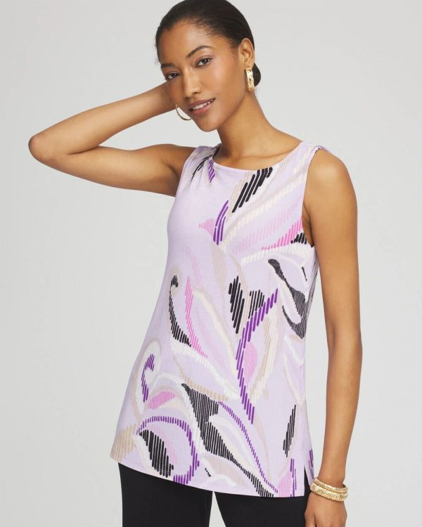 - Classic-fit, sleeveless bateau-neck tank with side-slits.