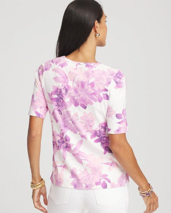 A ready-to-wear bestseller, now available in this season’s purple and pink tropical floral print on a white background. Expertly designed with breathable pima cotton fabric, this iteration features a crew neckline and elbow-length sleeves. It’s so simple to style, whether as a base layer or on its own, you’ll need one in every color and print.