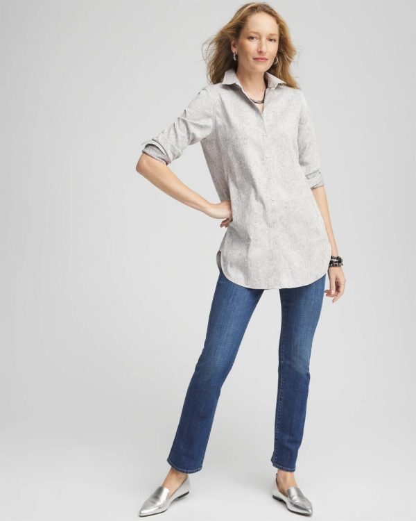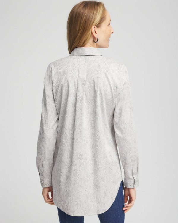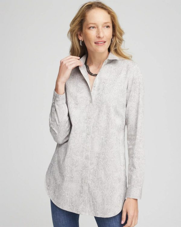 New Python Print Jacquard Tunic in our coveted No Iron™ fabric, made to defy wrinkles and stay fresh from the dryer to the end of your festive holiday party. There’s a reason why our No Iron™ top is a five-star rated, bestselling customer favorite. It moves with you for all-day comfort and stays looking brand new without the effort of ironing or dry cleaning. It’s the perfect shirt in any season, whether on its own or as a base layer. Designed with a sharp-looking shirttail hem, button cuffs, and a light python print, this button front pairs with jeans or pants. Available now in new animal prints, paisley, graphic prints, and more!