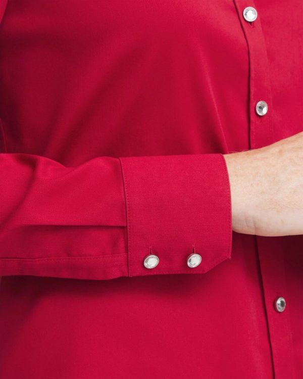 We’ve updated our No Iron™ shirt for the holidays. This version is made from smooth sateen fabric and has rhinestone buttons to add some bling to your look.