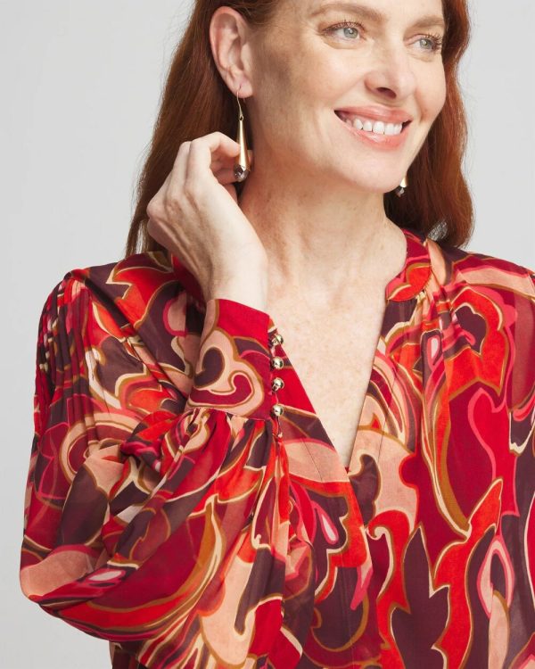 With crisp shoulder pleats and concealed half-placket, our new Priya Swirl Pintuck-Sleeve Blouse in a must-have to fully embody the elegance of the holiday season.