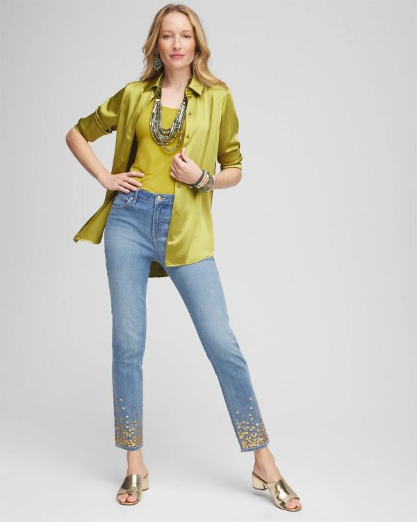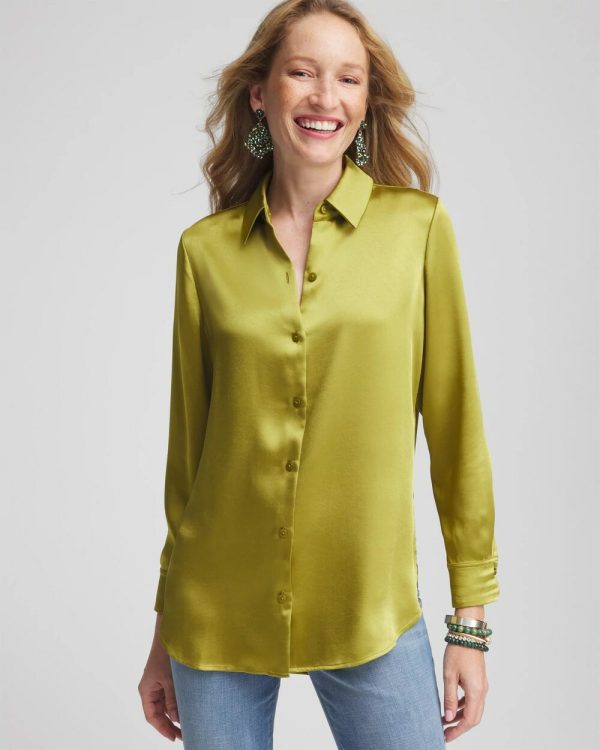 You will love our silky-soft new Satin High-low Tunic featuring an elongated shirttail and button cuffs for a flawless, easy fit. This glamorous design pairs well with slim pants or jeans.