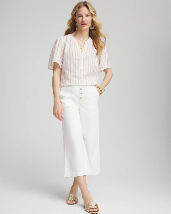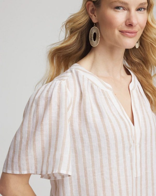 Chico’s Tops | Striped Linen Popover Shirt Sycamore Women