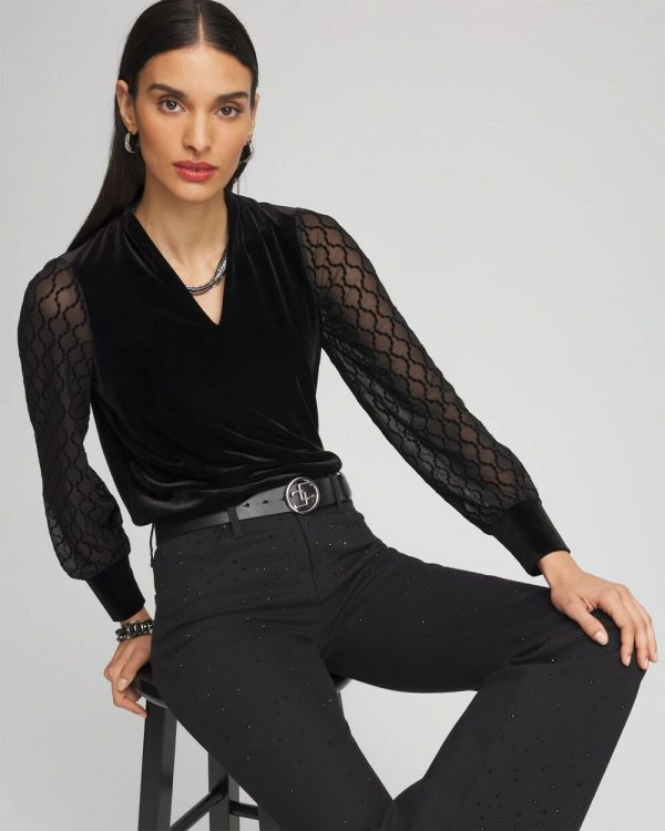 Chico’s Tops | Velvet V-neck Long Sleeve Top Black Women